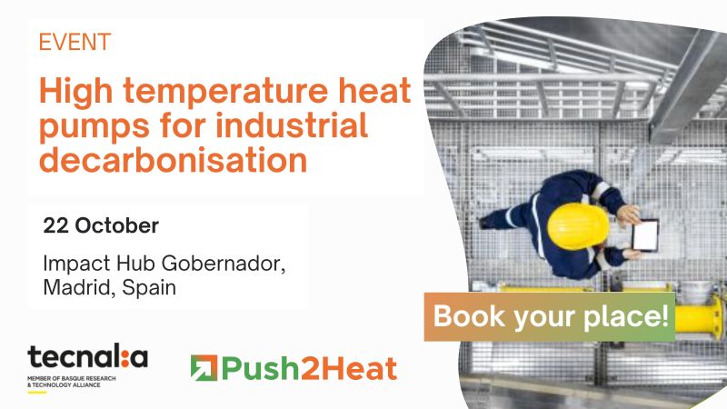 This is the future of efficiency, and it will be the central theme of the session “High-Temperature Heat Pumps for Industrial Decarbonization,” organized by TECNALIA Research & Innovation within the framework of the Push2Heat project.
